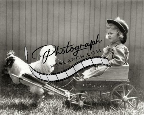 Fowl play,Small child in cart harnessed to rooster,1906,Animals,Children at Play
