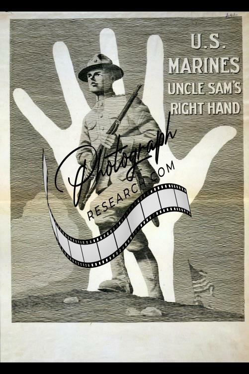 U.S. Marines,Uncle Sam's right hand,1917,WWI,War Poster Photo,hand,US Flag