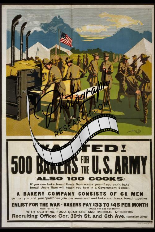 Wanted! 500 bakers for the U.S. Army,(also 100 cooks),1917,WWI,War Poster Photo