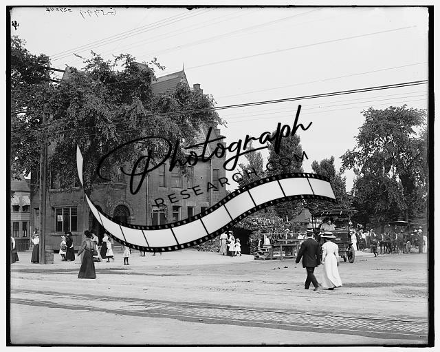 Belle Isle auto station,buildings,parks,pedestrians,Detroit,Michigan,MI1900