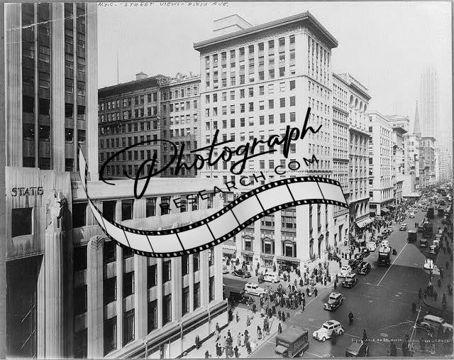 Bird's eye view,Fifth Avenue & 34th Street,New York City,NYC,July 27,c1937,cars