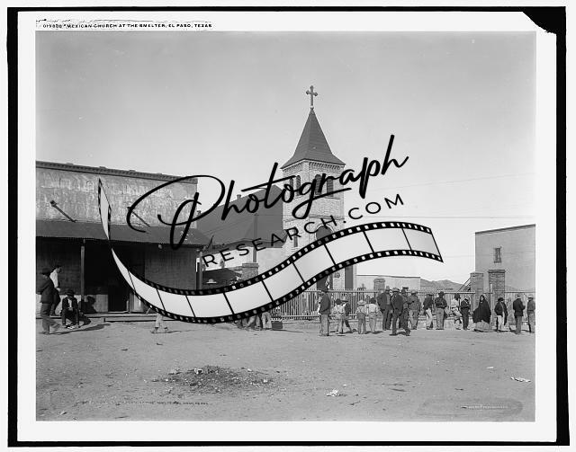 Mexican church,smelter,Catholic religious buildings,crowd,El Paso,Texas,TX,c1907