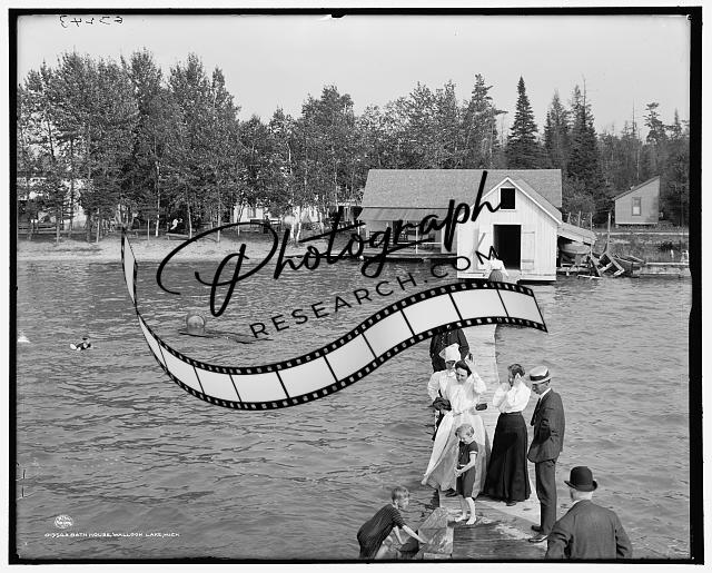 Bath house,pier,wharves,dock,water bodies,swimmers,Walloon Lake,Michigan,MI,1906