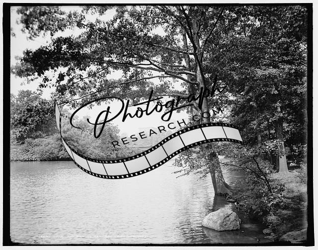 Lake,bridge,canoes,boats,water bodies,shoreline,Central Park,New York,NY,c1903