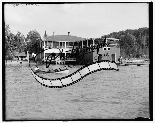 Bath house,canoes,boats,docks,piers,wharves,Walloon Lake,Michigan,MI,1900