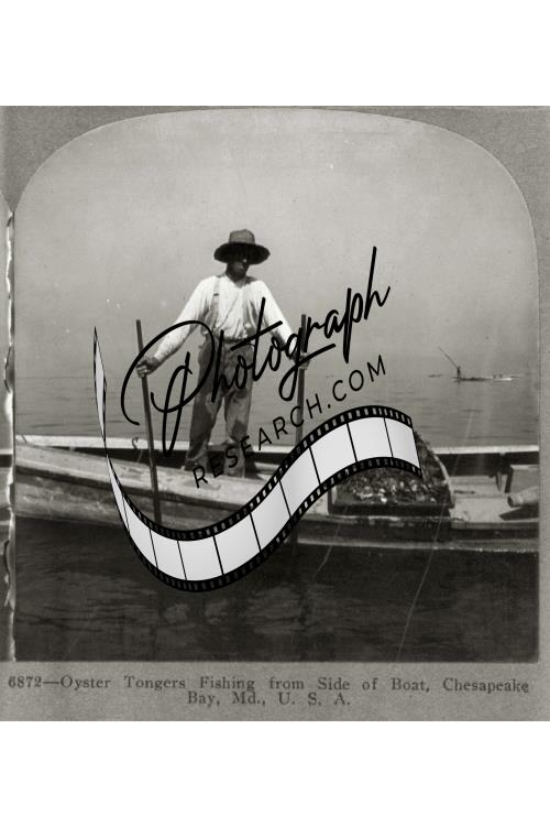 Oyster Tongers Fishing from Side of Boat,Chesapeake Bay,Maryland,MD,c1905