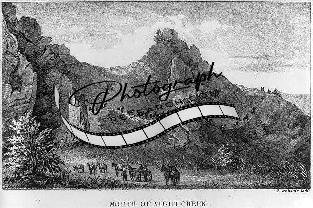 Mouth of Night Creek,Pack Train,Mountains,c1840's,mules