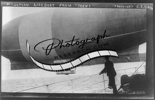 Wellman airship 'America' viewed from RMS TRENT,dragging anchor in water,c1910