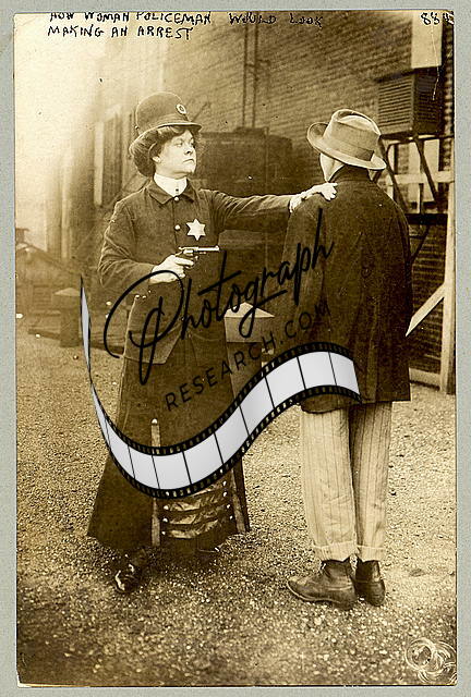 How woman policeman would look making an arrest,law enforcement,1909,gun,uniform