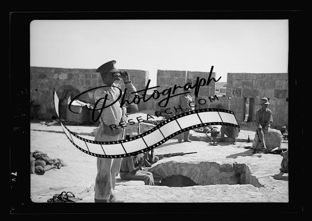 Title: War-like scene on roof of Tower of David, mounted machine guns - tele.