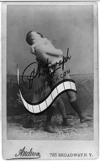 Men,Wrestling Poses in Studio,New York,NY,c1889,Wrestlers,Cross Buttock