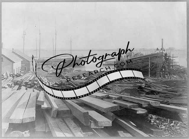 Ship Building,Wilmington,Delaware,DE,1892,view along deck of wooden ship,boats