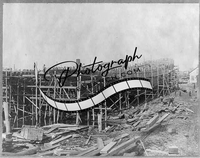 Ship building,Wilmington,Delaware,DE,1892,exterior of ship in stocks,boats