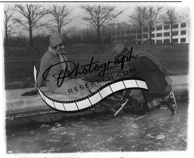 Ricardo,Angelica Pueyrredon putting on ice skates at Reflecting Pool,1925