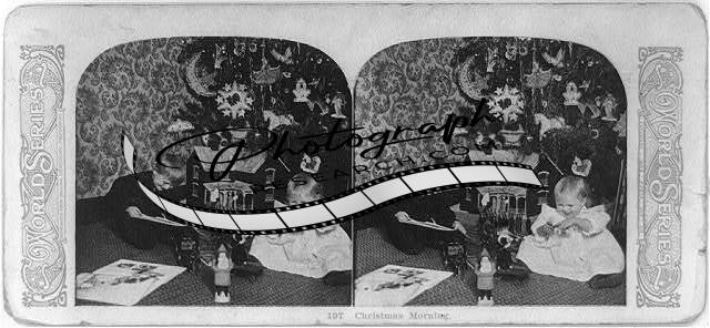 Photo of Stereograph,Christmas Morning,Xmas,Holiday,c1906,Children Playing