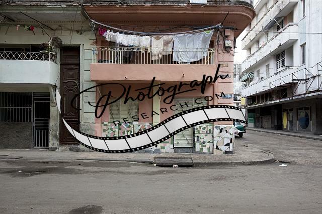 Title: Wash hangs on many buildings in Old Havana, Cuba