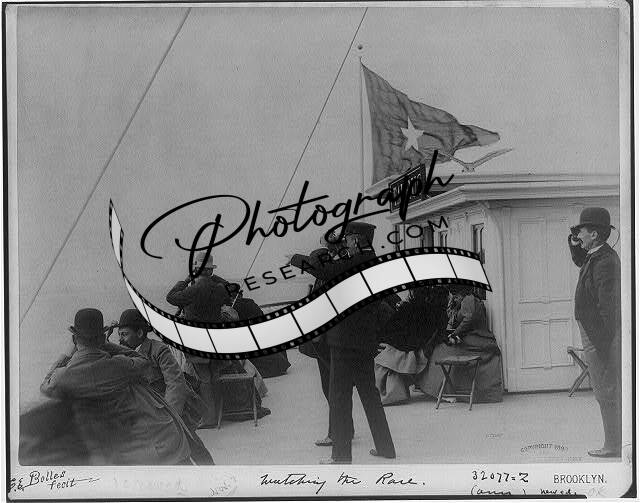 Watching the yacht race from ship TAURUS,c1896,flag,men