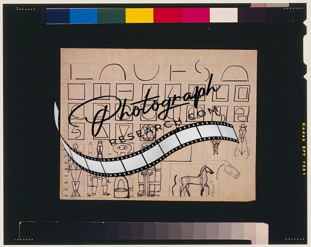 Line drawings, including sketches for a horse and figures, drawn by Marguerite or William Zorach