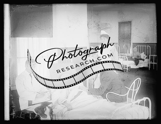 This glass negative might show streaks and other blemishes resulting from a natural deterioration in the original coatings.