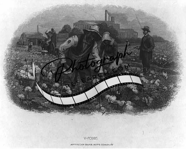 Cotton field,Blacks picking,White men watching,factory