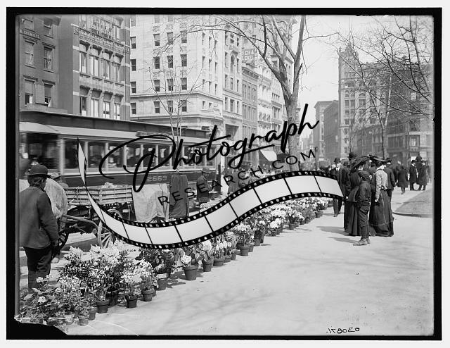 Flower vendors,peddlers,buildings,streets,roads,Easter display,New York,NY,c1904