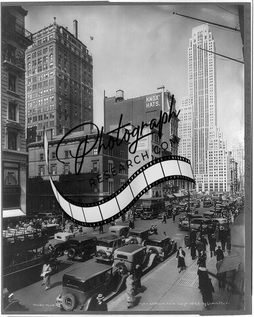 N.Y.C.,looking down 5th Ave,Wendel House,corner of 39th St,busy street,c1933