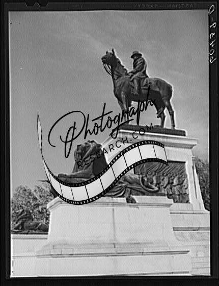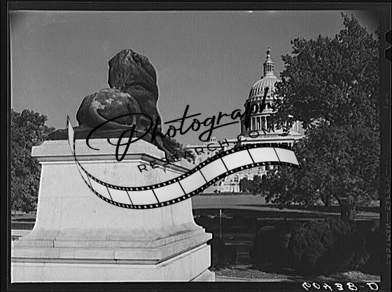 Title: View of U.S. Capitol and lion at General Grant's monument. Washington, D.C.