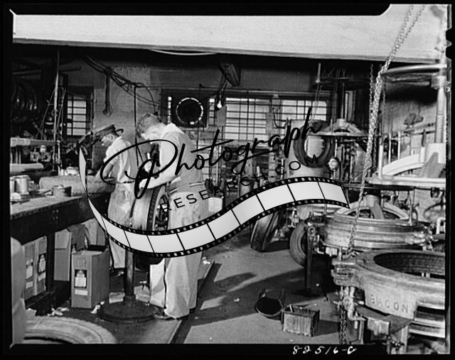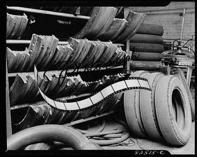 Title: Washington, D.C. Washington tire shop. Rubber butted off tires to smooth them for retreading