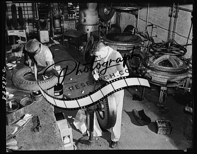 Title: Wahington, D.C. Washington tire shop. Removing truck from vulcanizing mould after 'cooking' for three hours