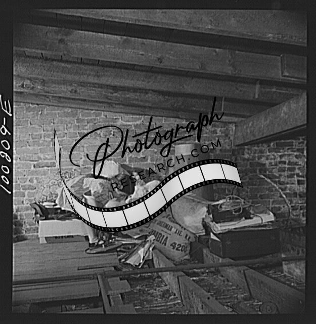 Title: Washington, D.C. Scrap salvage campaign, Victory Program. This boy keeps stacks of paper, metal and rags in his cellar, ready for a junk dealer to pick up