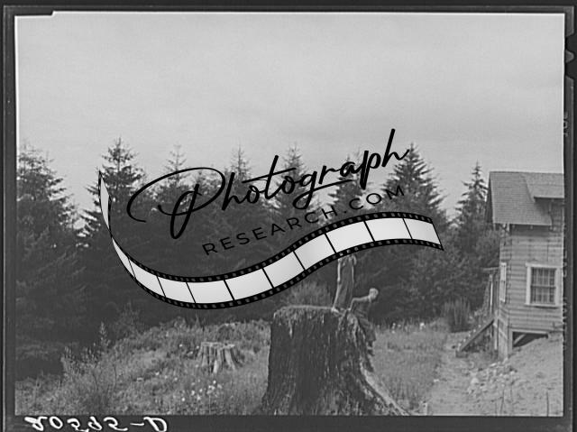 Title: Western Washington subsistence farm, whittled out of the stumps. 'Eighty per-cent of the forty-five thousand farms in western Washington are inadequate.' Farm Security Administration (FSA) state director. Washington, Grays Harbor County