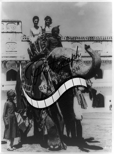 Jacqueline Kennedy,Sister,Princess Lee Radziwill,riding elephant,Jaipur,India