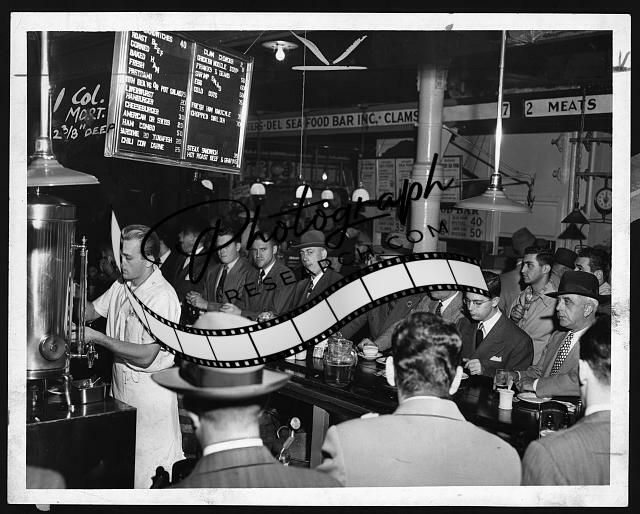 People eating at Pete's Bar,Washington Market,New York,NY,1950,behind the bar