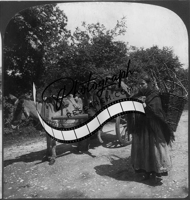 Mountain Turf Car Bound for Village Market,County Kerry,Ireland,c1902,Donkey