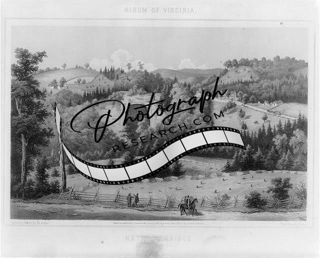 Natural Bridge,fence-enclosed fields,riders,people,road