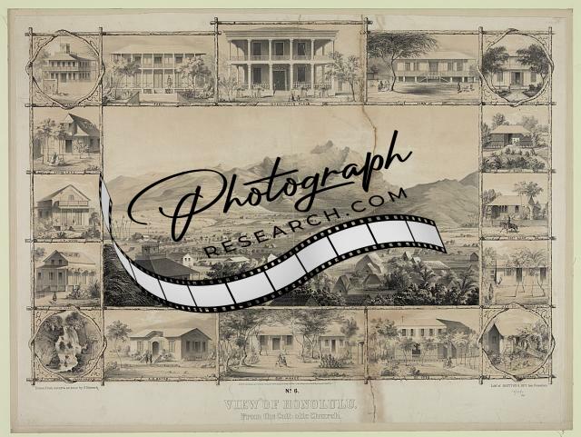 Honolulu,Hawaii,from Catholic Church,c1854,Hildebrand,Judd,Bates,Naunu Valley