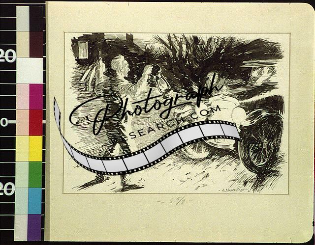 Motorist flagged on lonely road,Lantern,is the bridge out,c1922,Night time