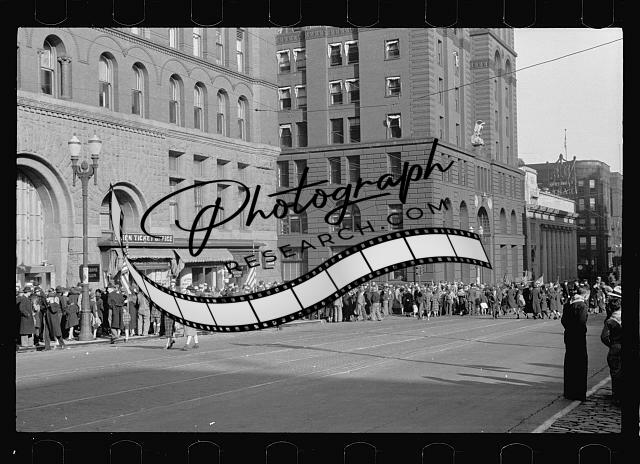 People waiting,parade,pass,Union Ticket Office,street,crowds,Omaha,Nebraska,1938