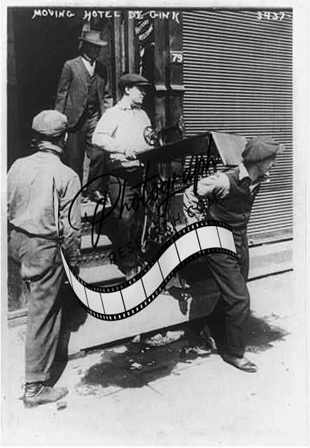 Moving Hotel De Gink,guests moving sewing machine from Bowery Hotel,NYC,1915