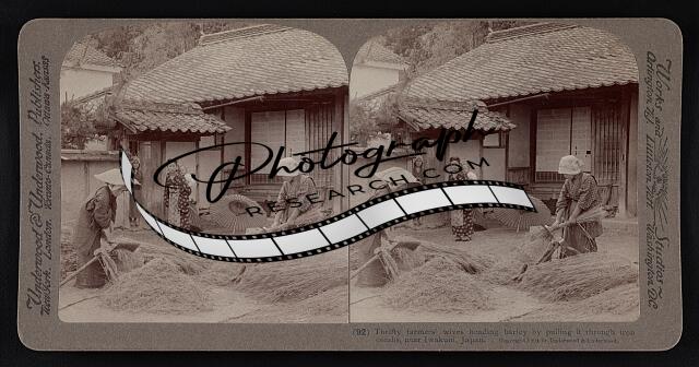 Thrifty farmers' wives heading barley by pulling it through iron combs, near Iwa