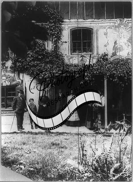 At home,6 People in front of a house,c1902,boy,plants