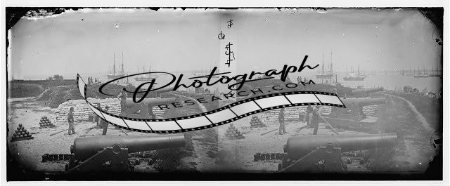 Caption from negative sleeve: Water Battery, Glouster Mounting 15 heavy guns. May 1862.