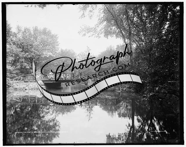 Rustic bridge,Schiller Park,pedestrian,water bodies,paths,Columbus,Ohio,OH,1900