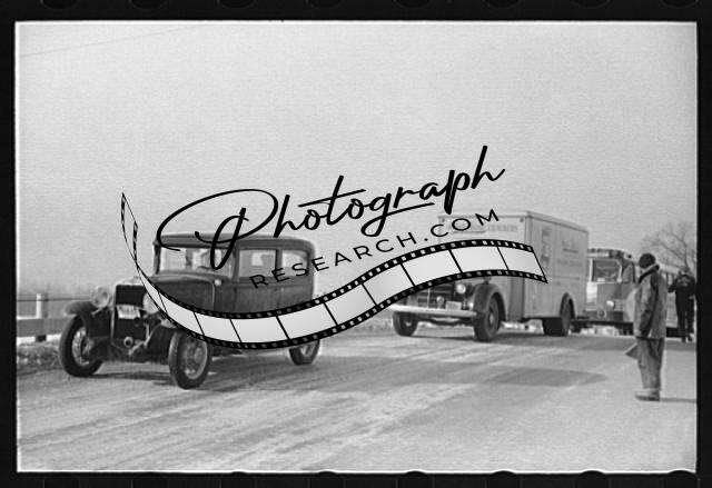 Cars stopped on Highway U.S. 50 because of auto wreck,Ross County,Ohio,OH,FSA