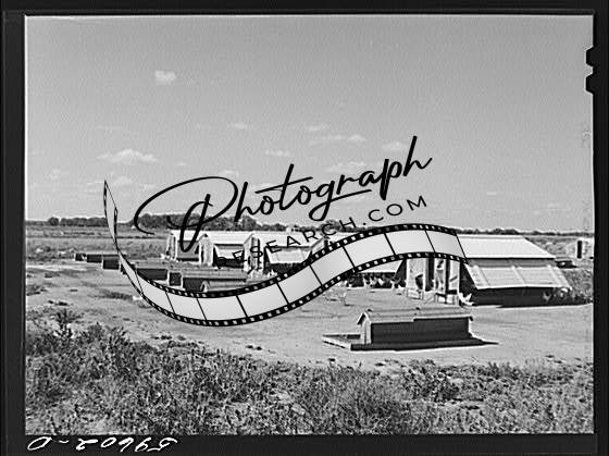 Title: Purebred Hampshires feeding at the FSA (Farm Security Administration) Two Rivers Non-Stock Cooperative. There are 181 head of hogs averaging 160 pounds. There are also forty sows and 219 suckling pigs