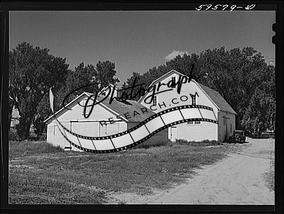 Title: Poultry houses and barn on Two Rivers Non-Stock Cooperative, a FSA (Farm Security Administration) co-op. Waterloo, Nebraska