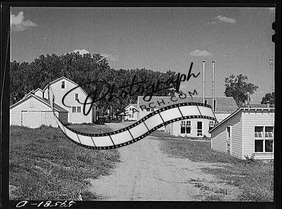 Title: Barn and equipment shed at Two Rivers Non-Stock Cooperative, a FSA (Farm Security Administration) co-op. Waterloo, Nebraska