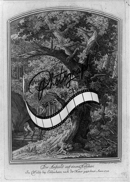 Der Anstand auf einen Hirschen,1745,Deer Hunting,Forest,1745,Hunter,Stag