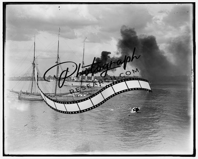 Detroit River scene,North Land,steamer,boats,Three Brothers,sailing ship,MI,1900