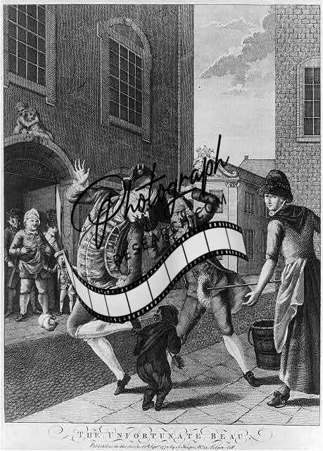 The unfortunate beau,c1772,well-dressed men,warded off,woman,small black boy